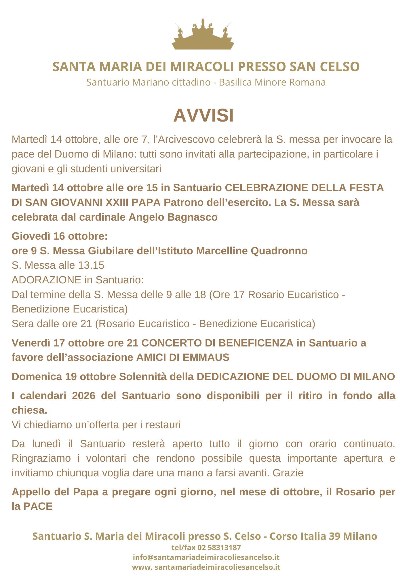 DOMENICA 26 MAGGIO Nella Messa delle 11 ricorderemo tutti gli anniversari di Matrimonio con la benedizione delle fedi nuziali e il rinnovo delle promesse, pregheremo insieme […]